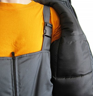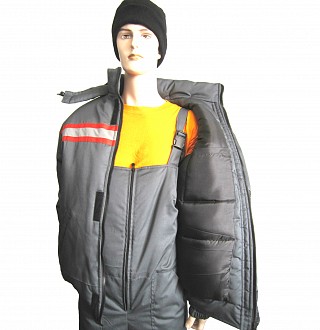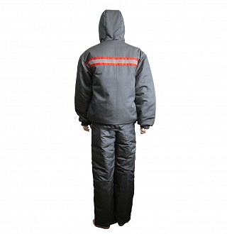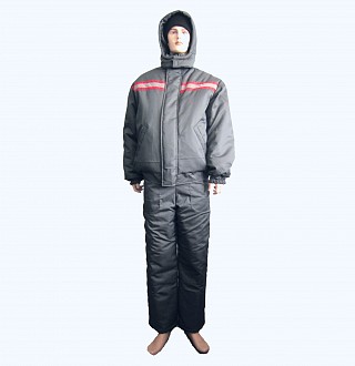 Рекомендуется использовать для защиты от пониженных температур для работы на производстве. Утепленный костюм состоит из куртки с капюшоном и полукомбинезона. Капюшон отстегивается. Имеются свето-отражательные полосы, для работы в условиях плохой видимости. Центральная застежка-молния на куртке усилена планкой с клепками. Вместительные карманы на куртке защищены клапанами.
